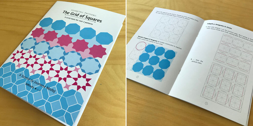Learn one of the basic grids for Islamic patterns, particularly associated with North Africa. The primary Grid of Squares, also known as the Nine-Circle Grid, is the basis for working with root 2 (√2) patterns, which is another way of saying we are working with 4 and 8 (and 16 etc). The grid and its variations are thoroughly covered, yielding 10 basic and classic patterns along the way.