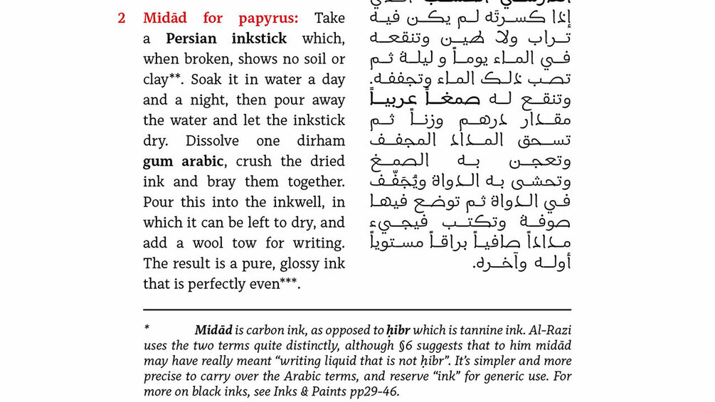 A practical translation into English of one of the oldest known Arabic-language inkmaking treatises, written by the polymath al-Razi in the 10th century. The original transcription is included along with abundant footnotes.